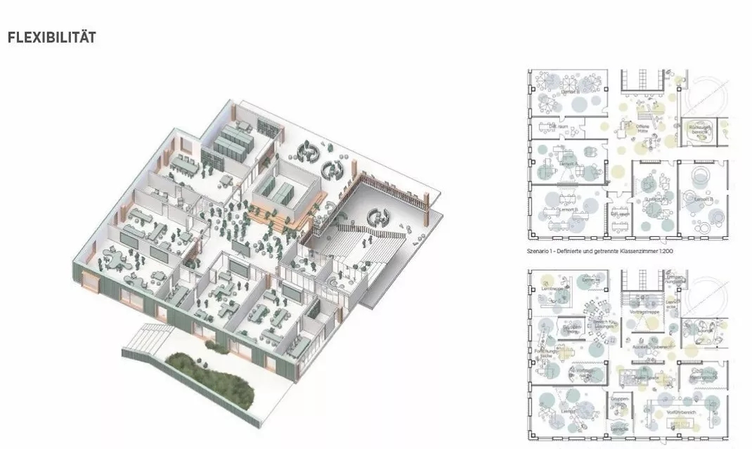 教育机构的业主是卡塞尔市政府,运营机构是卡塞尔市选定的学校。该项目总预算约为 3730 万欧元瓦尔岛开放学校新建筑、地区图书馆和青年中心的整体空间计划包括约 8,348 平方米的建筑面积,不包括附属区、建筑区和体育馆。C.F. Møller 在学校的平面布局中清楚地表明,这里将创建一座具有新空间特征的校舍,不再像早期的校舍那样将教室排成走廊,而是将学校的教育理念转化为空间布局。根据学生的年龄,在功能规划中定义了不同的空间要求。