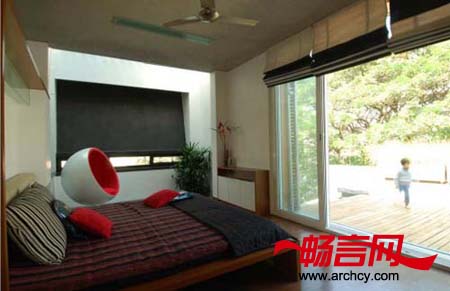 旧宅位于这个400平米地块的中心地带,这样,它周围的空地就可以作为住宅和周围繁忙区域(住宅的一侧有一所学校和一个庙宇)的一个缓冲地带。房子建造的很有层次感,这样不仅能安装更多的窗户,让房子更明亮,它也将住宅的室内与室外区域融合在一起。住宅以这样的方式与周围环境相连,不只让房子有更好的安全性,也能很好的保护住户的隐私。
