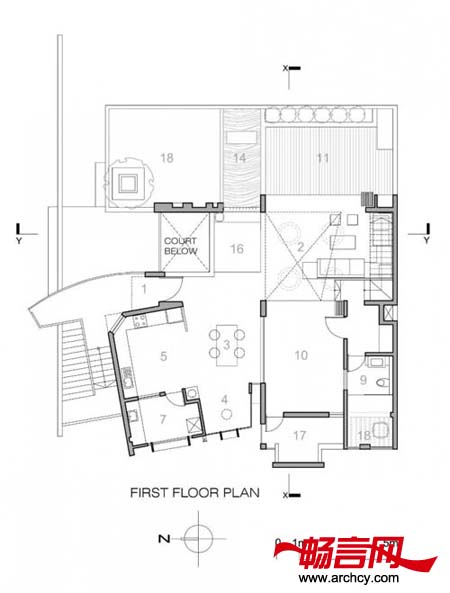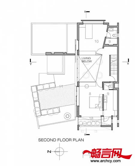 因为旧房需要承重,这对它来说就是一个挑战。因此,旧房的室内墙壁只拆除了很少几个,因为它要承担起顶上花园的重量。此外,建筑师还巧妙的添加了一个由支柱和横梁组成的结构,用以辅助支撑。这些横梁不仅加固了旧房的石板,也为上面的草坪创造出了一些区域、承担起了草坪的重量。位于住宅东南角的、长4.5米的悬臂空间为位于二层的木板平台提供大片阴凉,它也突出了住宅的叠加这一性质。