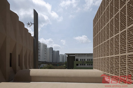 Formwerkz建筑事务所参考传统伊斯兰设计,创造了新加坡Al-Islah清真寺。项目具有繁复的图形和表面,坐落于东北部人口稠密的榜鹅区,面向区域内的穆斯林。所在地区近年来经济发展迅速,新建项目包括新加坡科技大学新区和多座高层住宅楼。