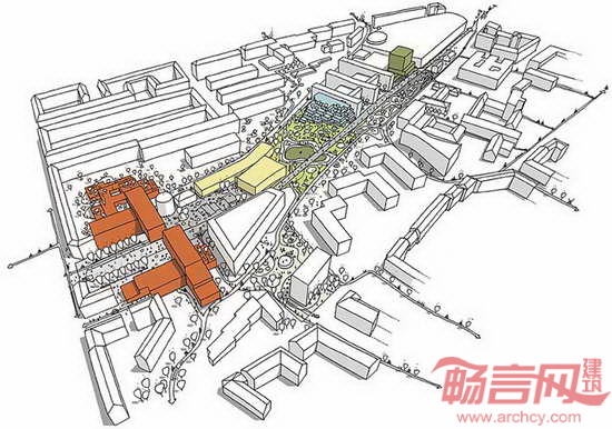 哥本哈根商业学院目前是欧洲同类院校中规模第二大的机构,在校学生达到2万人。学校邻近哥本哈根市中心。学院同Frederiksberg社区协作,提出了一个大胆的构想,目标是将现有基础设施转变成世界最佳的校区。项目中央交织着城市生活和学生活动,C. F. Moller建筑事务所提供了完整的总体方案,一侧是功能、建筑、过道混合空间,另一侧是教育、研究、学习环境。