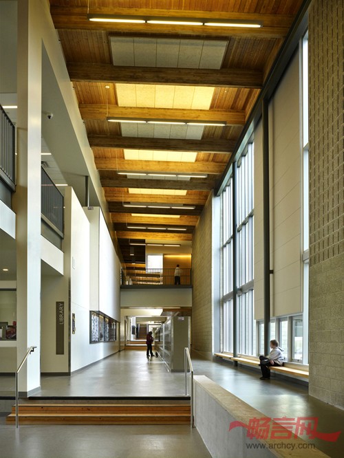 在115000平方英尺的设施中心,一座两层高的建筑提供了一个用于集会、鼓励沟通和协作的活动场地。自始至终,该可持续发展建筑通过健康的环境和结构特点,结合日常活动完善了课程教育,体现了学校的教育宗旨。户外学习区域和绿色建筑将学生与自然世界和资源保护教育结合在一起,培养他们参与到未来的可持续发展中。
