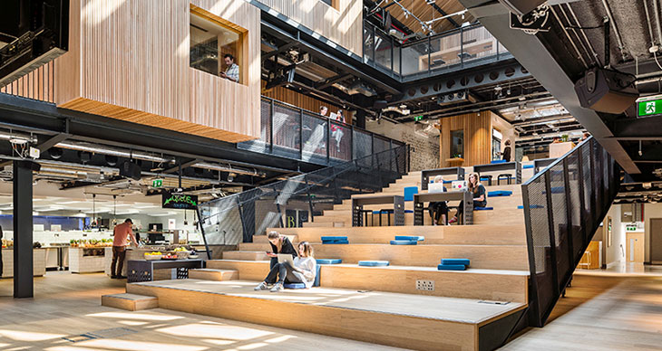 Airbnb同Heneghan Peng事务所合作设计了其位于都柏林的总部建筑。这座名为“库房”的建筑标志着业主首次预设室内空间的建筑布局。这个4000平米的总部建筑容纳400名员工办公,而公司此前的都柏林办公室也将继续使用。已有建筑年久失修,这次是业主同设计公司的二度合作。总部被认为是该品牌的首次“城市园区”模型,包含新建结构元素,其中有鸿伟的中央楼梯。为了增强员工可视性,业主公司的环境团队在项目中添加了“社区”概念,让员工聚集于单个专用底座中。