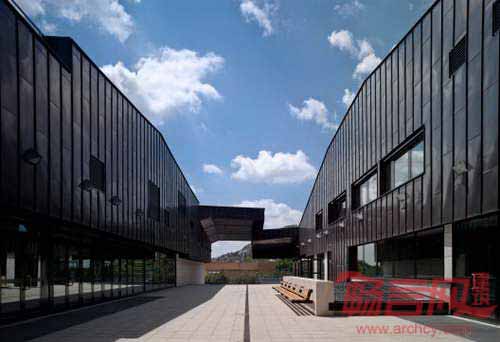体育中心和街道通过露天广场区连接。体育场南端的泳池面向一个宽阔的花园,花园容纳了若干室外体育场和一个室外泳池。