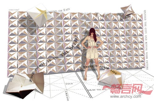 无独有偶,Sarah Wigglesworth建筑事务所也把废弃材料应用到了为Anthropologie设计的作品当中,让废弃的材料获得了新的使用价值。在建筑师制造的颠倒世界里,建筑变成了衣服,羽绒幻化成了云彩,面料被重新缝合,城市在一片迷人的虚幻中被重新成像。稍微具有技术性的作品是Spacelab设计的。作品中采用了低技术的齿轮皮带和发动机来使一系列的硬纸板盒子旋转起来,从而使COS的展示橱窗充满了活力。在盒子的交替过程中产生的图案据说是“模仿了建筑、时装和大众之间存在的关系”。最后一个但并非不重要的一个作品便是Moxon Architects与香蕉共和国合作创作的。他们的作品采用了半透明薄板设计。通过空隙和光的作用创造了一种起伏的层次感。而透过薄板上的孔洞可以看到商店内的时装。