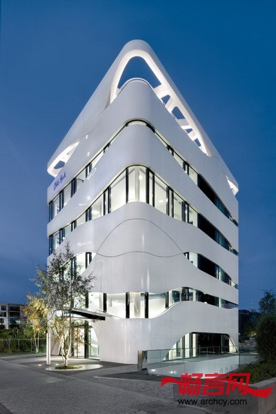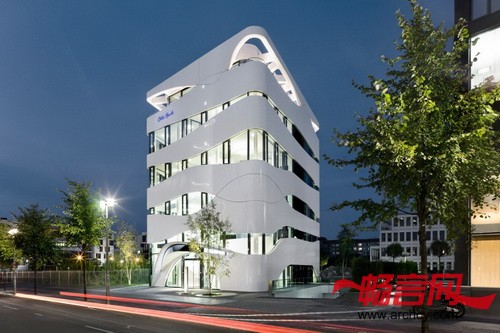 柏林Gnädinger建筑事务所以人类肌肉纤维为理念出发,设计了一个形状新颖、抽象的幕墙,它围在六层的混凝土结构外围,形成了1000平米的楼层面积,让大楼显得漂亮又有活力。Gnädinger的设计将高科技和自然和谐的融合在了一起。大楼外层一条条白色缎带式的装饰是预先制作的,它是根据人类肌肉纤维的模型设计的,象征着复杂的生物进化过程和结构。大楼的“外壳”是用铝板和玻璃幕墙组合而成的,它在柏林开了先河 —— 柏林大街上不是传统的石头建筑和就是现代的玻璃建筑。在Otto Bock科学中心周围的建筑都处于著名建筑师之手,包括Richard Rogers,Renzo Piano,Helmut Jahn, Hans Kollhoff和GMP建筑事务所等等,这也显示了这座紧凑建筑的独立和自信。