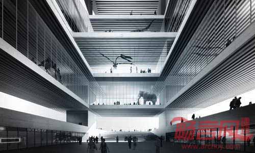 法国COMAC建筑事务所完成了柏林自然科学博物馆设计方案。设计方案分成两个部分,第一是同城市连接的公共区域,第二是营造内部空间的展览区。项目场地成为连接大学园区、火车站和动物园的城市空间,场地上方“悬浮”着展览区。科学博物馆营造出天地间的张力,沟通了过去和未来,代表现在的光线穿越了人类历史的多个层次。游客大厅位于博物馆负一层,涵盖所有功能设施:行政区、教育活动区、科研中心、图书馆、储存区和技术区。展览区围绕中庭设置,布局设计旨在重建史前洞穴般空间。建筑平面设计具有多孔性,博物馆功能区设计不显乏味,如同剧场般的光线投射到空间内。
