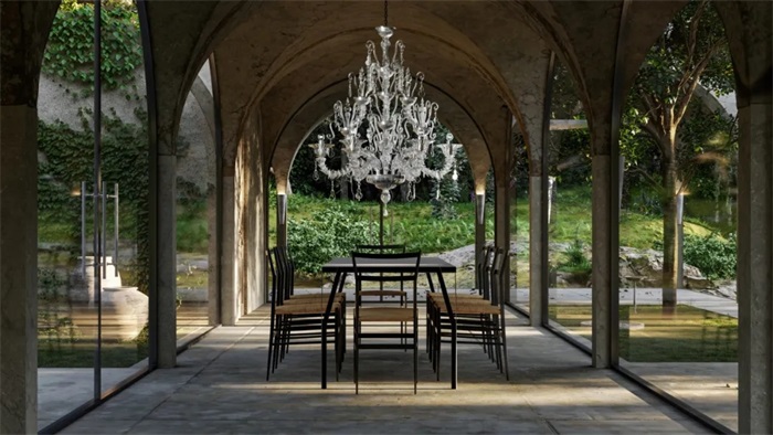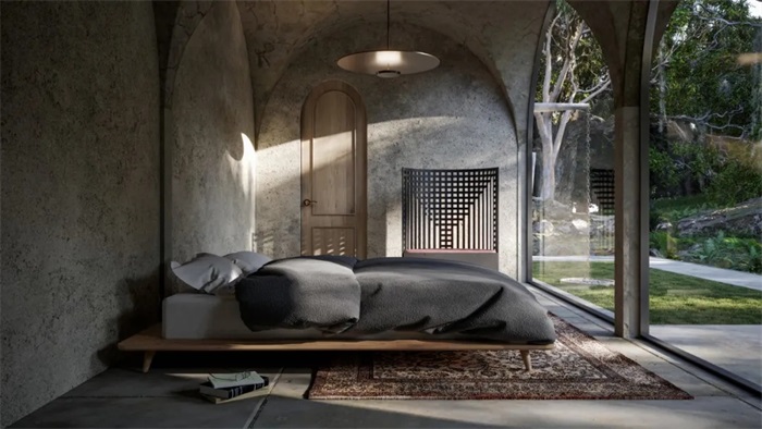 在美国南部腹地,马克·索普设计(MTD)新概念化作品:“四个花园的房子。” 该住宅以混凝土拱顶的巨大组合为特征,坐落在萨凡纳河地区的活橡树和多年生蕨类植物之间。受到英国哲学家david e 在其作品《花园哲学》中的影响。