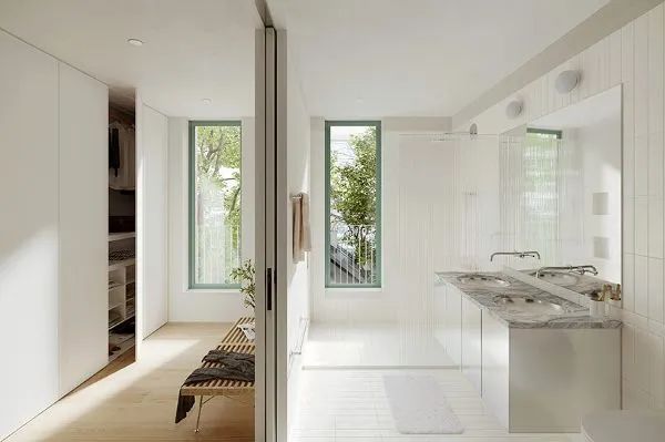 绿化在144号的设计中发挥着核心作用。该建筑错落有致的外形使其拥有一系列私人和共享的户外空间,为住户提供了享受户外活动或安静放松的机会。每栋住宅都配有一个私人室外露台,可以欣赏布鲁克林市中心、东河或曼哈顿广阔的天际线。大堂和休闲区周围环绕着梯田花园,创造了室内外流畅的体验,将大自然与日常生活融为一体;外部走廊的设计充分利用了自然光和通风,通过多个开放空间和通风廊道将住户与周边社区连接起来。