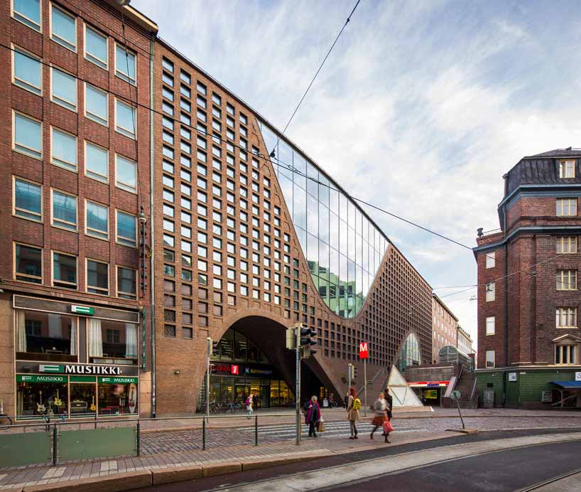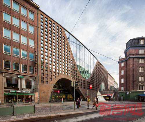作为芬兰国内最大的图书馆项目,由Anttinen建筑事务所设计的赫尔辛基大学主图书馆已于近日完工。依照甲方要求,图书馆不仅要满足学生和员工需求,同时应当面向更广范围的大众。项目坐落于市中心,旨在提供传统服务,同时迎合新数字时代需求。设计团队在设计工程中力图保证建筑在材料和尺度方面同周边环境保持一致。弧形砖石立面与现有城市建筑相协调,巨大的拱形入口赋予建筑震撼的外观。