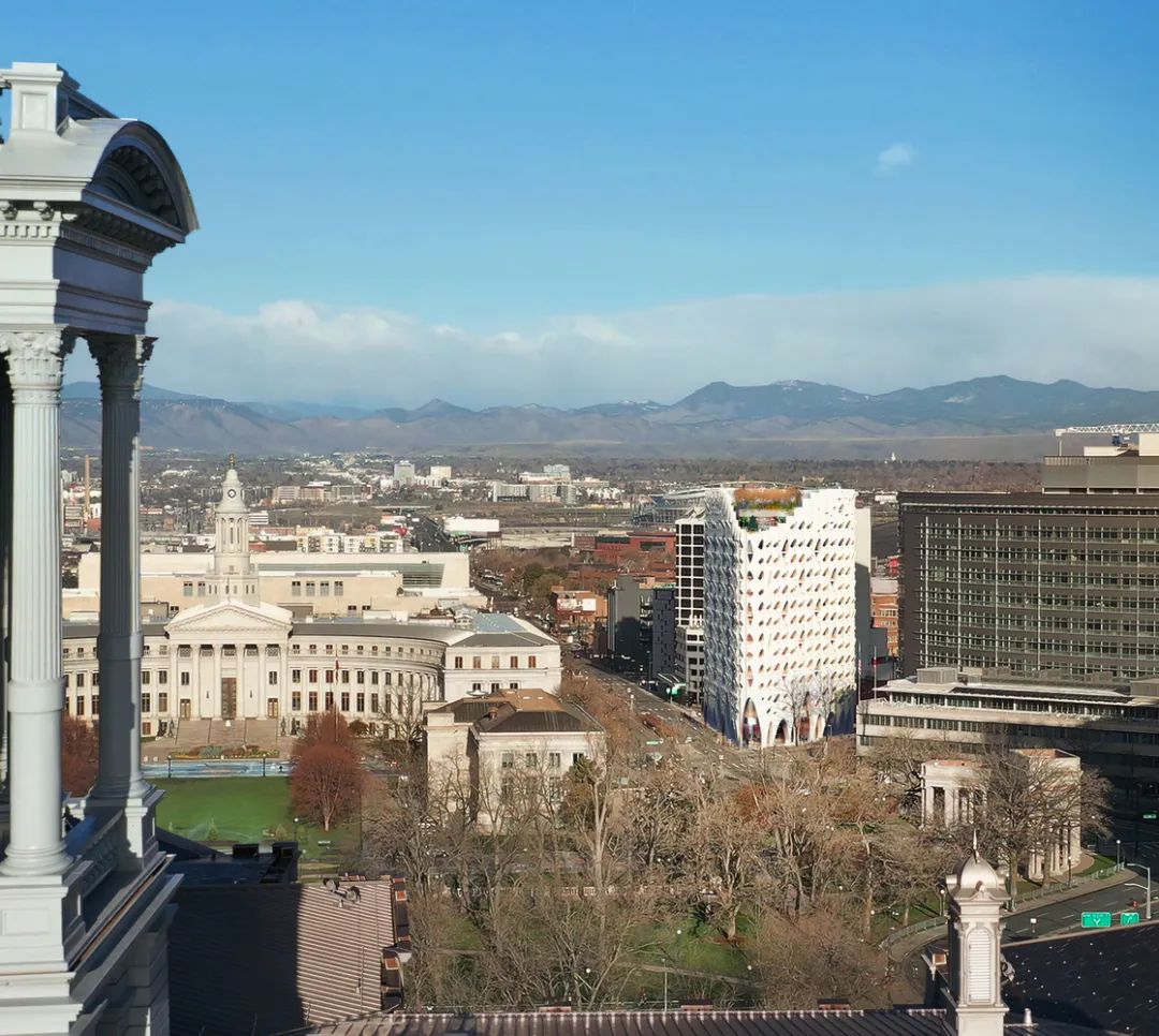 项目位于科罗拉多州第14街和科尔法克斯大道的繁忙地点,拥有265间客房,设有屋顶餐厅和酒吧,将于2023年底开业。设计采用阿斯彭树风格的结构,带有独特的眼形窗户,与“阿斯彭之眼”相呼应,并增加了与丹佛多变气候相适应的能源性能。立面的设计相对于建筑内部进行了优化,每个窗户上的“盖子”向外延伸以遮蔽室内空间。盖子还引导雨水,以保持立面看起来持续干净明亮。在内部,窗户的大小各不相同,以反映空间的多样性。在客房内,酒店客人可以通过窗户欣赏山景和市景,窗户也可以进入,变成座位或书桌,进一步将居住者与户外联系起来。