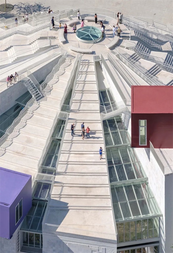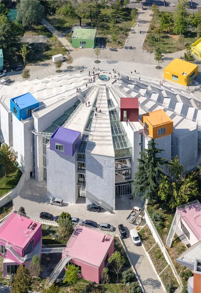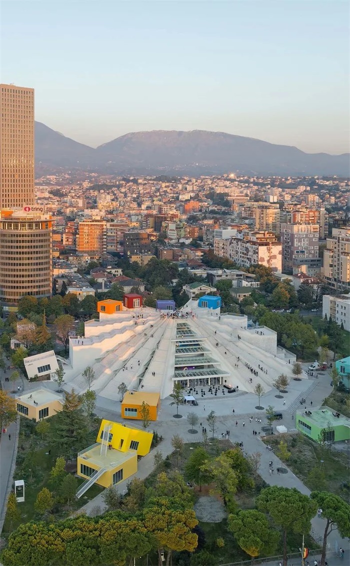 在阿尔巴尼亚首都的中心地带,一个新型文化中心现已向公众开放。地拉那金字塔,最初是为纪念共产主义统治者恩维尔-霍查而建的博物馆,MVRDV对其进行了彻底的改造。地拉那金字塔重新利用了混凝土结构,现在成为了一个全新公园中的开放式雕塑。公园和雕塑容纳了一个个五颜六色的盒子,这些盒子散布在原有建筑内部和它的周围,成为一个个咖啡馆、工作室、工作坊、创业办公室、育成中心、节庆场所,以及供阿尔巴尼亚青年免费学习各种技术知识的教室。