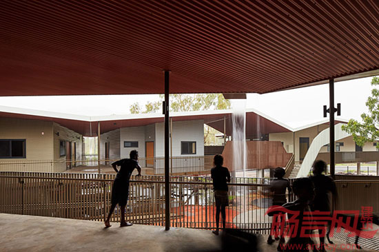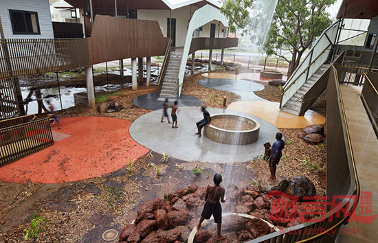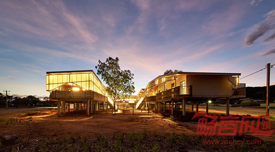 Iredale Pedersen Hook建筑事务所设计了位于澳洲北部Warmun小城的老年中心。设计师同老年社区积极配合,在了解当地居民、传统风俗和景观特点的情况下,完成了新建设施的创作。项目色彩丰富,响应了原住民文化和秀美的山河风光。此外,整个建筑调高了3米,设有多个坡道,连接地面和建筑一层。