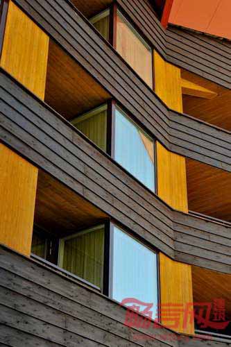 酒店轮廓灵感来自传统阿尔卑斯山木屋和美国山屋,酒店屋顶和平面依照周边现有建筑规模进行塑造。酒店覆盖了横向木板材,在视觉上使建筑尺寸更为小巧。
