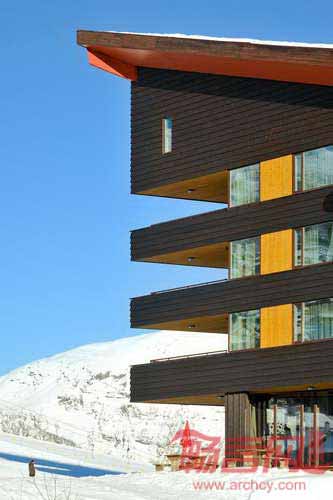 JVA工作室赢得了2008年挪威Myrkdalen滑雪度假中心总体规划设计竞赛第一名。Myrkdalen酒店是实施总体规划的首个项目。酒店的位置和体量都体现了项目的整体规模。酒店依山而建,在阿尔卑斯山中营造出一块公共广场空间。