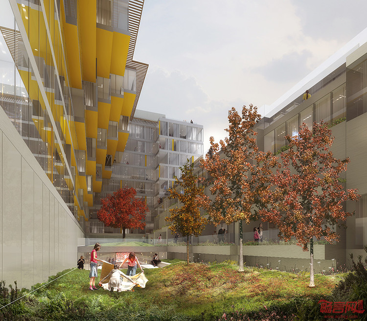 项目建筑面积为456000平方英尺,设计上一方面与国家公园球场形成视觉对位,另一方面也寻求增强居民与周围社区的联系。