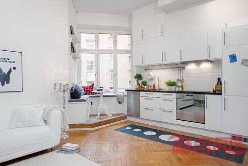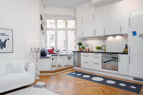 Plantation 9A公寓位于瑞典哥德堡市安静美好的Linnestaden住宅区。公寓所在建筑已有百年历史,保留了此前建筑的部分特征,并改造了厨房区域,增添了储存空间。公寓使用面积40平米,设计为开放式布局,各生活区域安排合理。起居室宽敞舒适,适宜主人的社交活动。楼层高度达3.2米,地面铺设了鲱鱼骨形的橡木地板。卧室具有良好的私密性,设有双人床、梳妆台、衣柜。卧室一个墙面张贴了花卉图案的壁纸,为房间带来温馨和暖意。