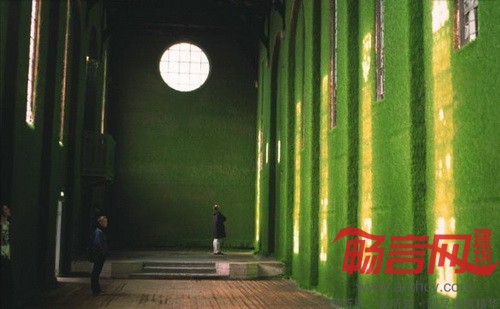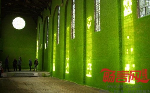 英国设计公司Heather Ackroyd & Dan Harvey近期对伦敦东南部的一座具有地标意义的老教堂Dilston Grove进行了室内装饰,不同凡响的是,他们用来装饰内墙面的竟然是绿茸茸的青草!