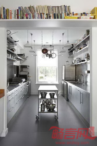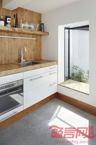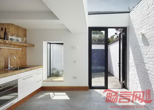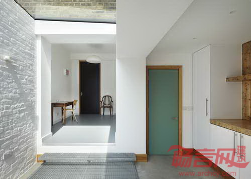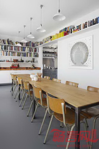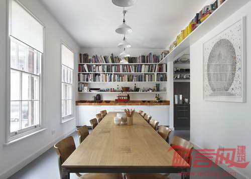 Project Orange建筑装饰设计公司对位于伦敦中央的一所住宅进行了翻新改造,这家主人每个月举办一次餐饮俱乐部活动,项目为其增加了新的可用空间。设计师将主厨房迁至一层餐厅隔壁,方便主人招待宾客。新餐厅的餐桌颇有特色,可以根据就餐人员多少进行调整。嵌入式搁架占据了相邻的两堵墙上方。厨房用品均为上品购买的成品,实用空间完全定制成主人希望的模式,符合其特有品味和需求。建筑师还在住宅背后添加了一个具有天窗的小厨房。