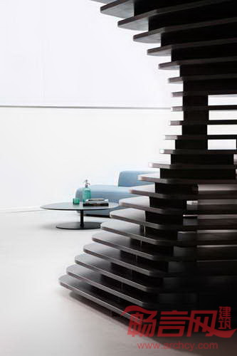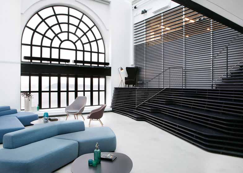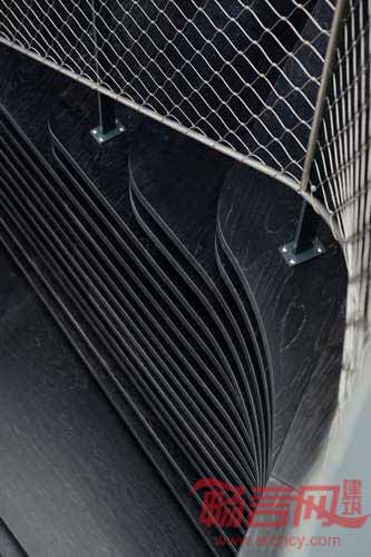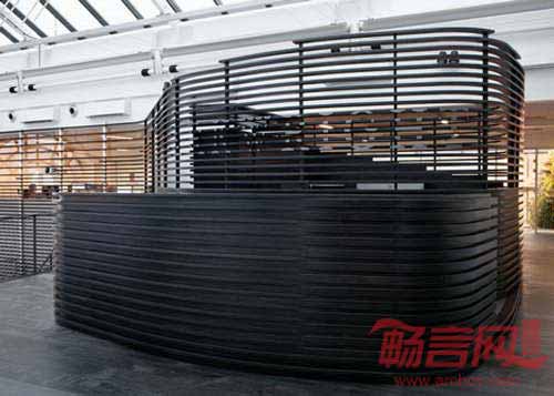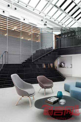伦敦Haptic工作室从挪威海岸常见的侵蚀花岗岩中找寻到灵感,设计了拥有弯曲层合状楼梯的奥斯陆Arkwright办公室。Arkwright是一家企业金融与战略公司,委托Haptic工作室设计其新办公室。办公室前身是位于Arer Brygge区的港口仓库。在进入二楼办公室时,员工和访客将看见一个由黑木板制成的巨大接待台。前台后面有更多的木质板块,形成围拢办公室的弯曲墙面。设计师透露,“我们的灵感是挪威巨大的花岗岩沉积物,这些物质被数千年冰川活动打磨光滑。”楼梯向下延伸,到达休息区,包含宽阔的楼梯踏步,员工可以闲坐片刻。