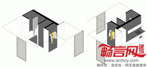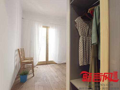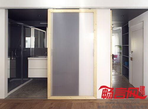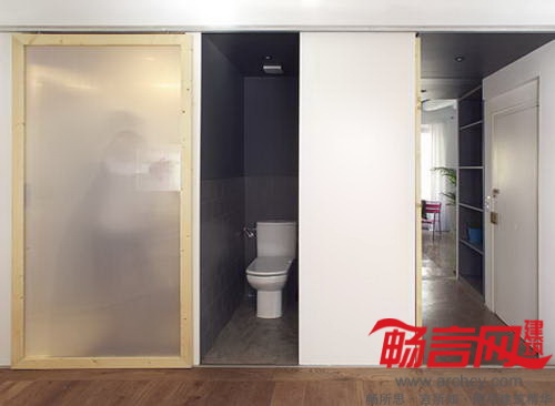 卧室的移门同时充当浴室和洗手间的房门,因而一次只能关上其中的一间。