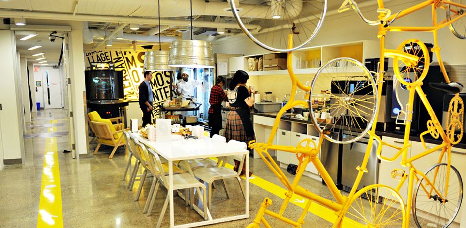 HOK为位于多伦多的谷歌加拿大总部提供了设施功能规划及室内设计服务。这一5,390平方米的工作环境随处可见各种想象力的发挥,体现在各种精心设计符合人类工程学的空间与高科技的完美融合。谷歌对于此设计的口号是 “优雅的车库” – 意为通过创意性地使用物美价廉的材料来再造一个经过精心修复的新空间。此办公室采用了很多当地艺术家的作品,同时再现了许多加拿大当地文化痕迹。为了支持谷歌对于可持续实践的承诺并成为多伦多最具环保意识的绿色办公室,设计团队正朝着LEED金级认证努力。一些细节亮点如地毯是由从海底打捞而来的可回收钓鱼线制成,小厨房内则有一堵隔断墙是由单个的自行车零件组合而成。