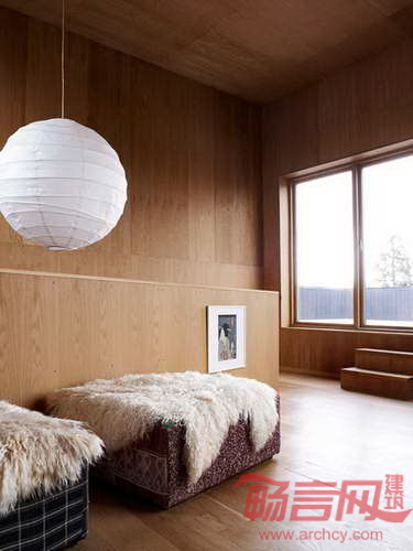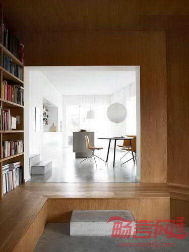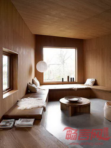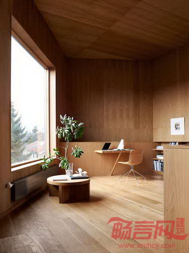 Mette&Martin Wienberg建筑事务所将丹麦一座村舍改造成带有木装饰墙板和舒适家具的现代住宅。Wienberg住宅坐落于奥胡斯Hojbjerg住宅区。房屋内部拥有光滑的混凝土地面,部分房间刷成白墙,起居室采用油处理橡木装饰板。设计师采用木板材营造出温馨舒适的起居空间。同时这种木装饰材料也使得起居室和花园关系紧密,在材料和氛围上达到了统一。大扇玻璃窗外是优美的花园景致,覆盖着树枝的花园也勾勒出设计师心中关于“林间小屋”的遐想。