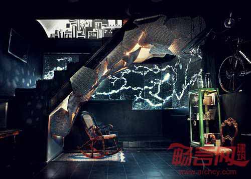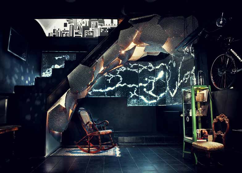 瑞典设计师Toki Drobnjakovic和Per Sundberg合作,将斯德哥尔摩一家地下俱乐部改造成办公空间。项目是建筑工作室和自由职业者灵活办公空间,运用泡沫包装材料包裹在混凝土基底上;楼梯覆盖了六边形混凝土树叶;空间内还包含植物绿化墙面和躯干形雕塑。两位设计师与混凝土制造企业Butong合作,制造出室内装饰元素,实现了“地下混凝土狂欢”设计理念。