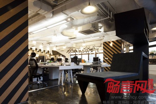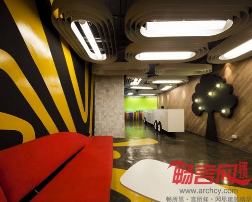 创意区被设计得比较开放,室内亮度也相对较高,员工在这里可以畅所欲言、互相激励、分享各自的想法,像一个大家庭一样共同协作;而旁边的管理区的室内色调则暗一些,装饰颜色也比较丰富,仿佛是在提醒员工在工作中要保持激情。
