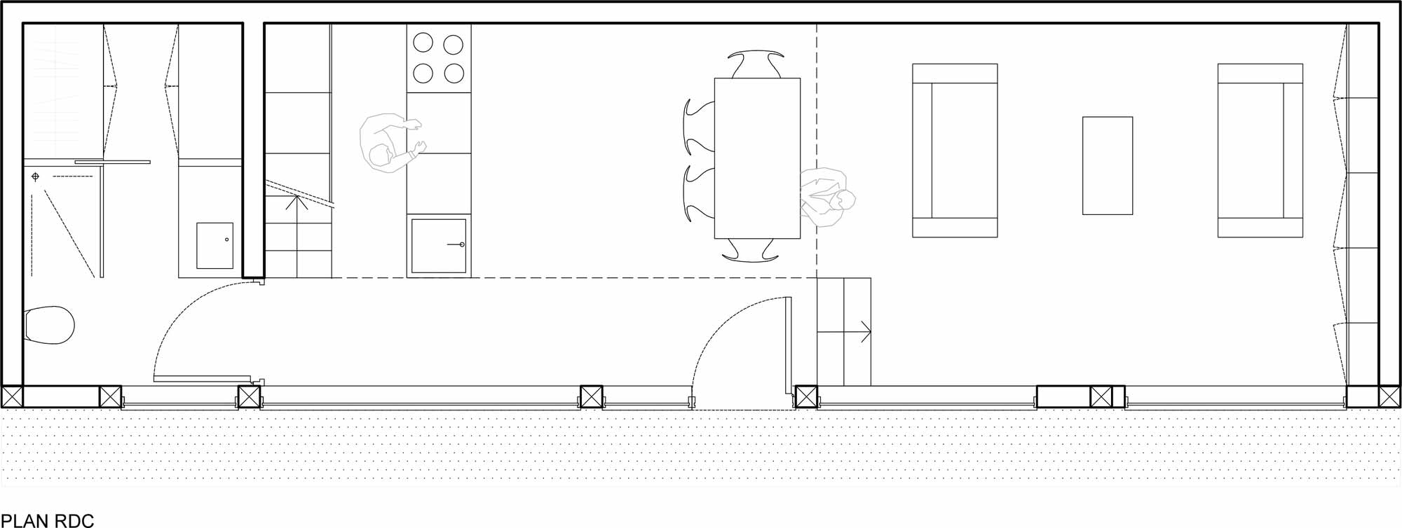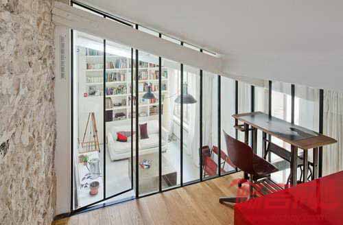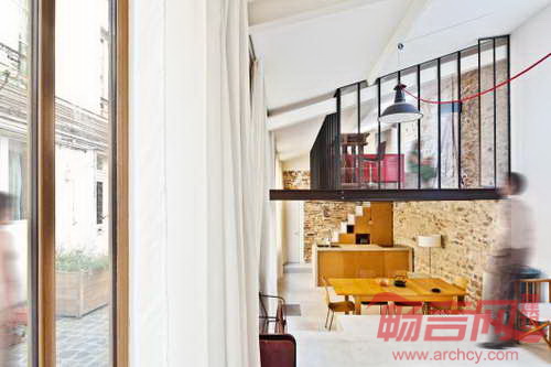 项目坐落于巴黎20区的一个后院旁,这座艺术家工作室(13×3.5×5m)被改造成起居空间。空间被划分成三个半层,分别具有合理的功能。卧室是真正的玻璃小屋,占据了房间的多数空间,从厨房楼梯可以进入卧室。