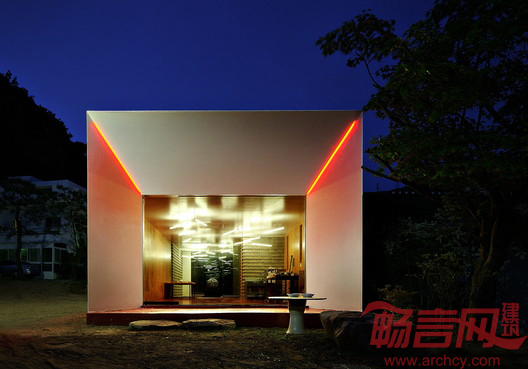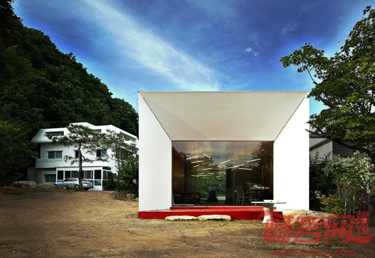 第一次到“巧克力盒子”的人可能会以为它是一个陈列室或者画廊,但实际上它是为作家Jeong Gil-Young打造的工作室。通过空虚感设计和大胆的颜色使用,这间工作室体现了作家和建筑师的个性。