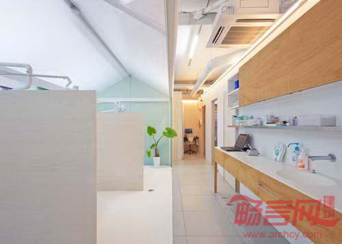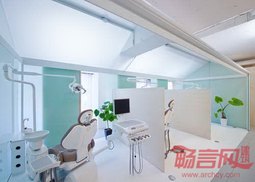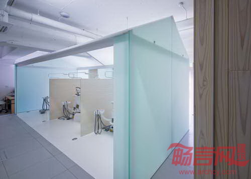 日本Tato建筑事务所设计了位于神户Nakayamate的牙医诊所。半透明的房型围护结构中设立了不同的诊室。在改造之初,Tato建筑事务所清楚了室内所有的装饰,将其还原成混凝土墙面,再刷上白漆,最后安装中央半透明分隔结构,将空间分成若干个诊室。木质屏风形成中央区域的隔断。墙壁由镀膜玻璃构成,天花板采用半透明聚碳酸酯板材。设计师Yo Shimada表示,“柔和的光线令病人更加舒适。我们希望创造洁净、安宁的环境,同时注重对于光线质量的控制。”