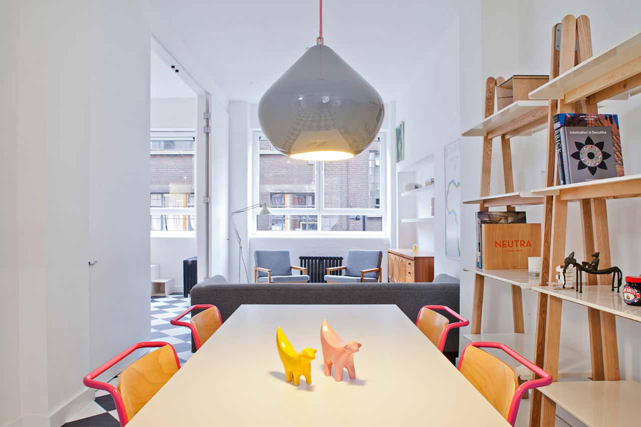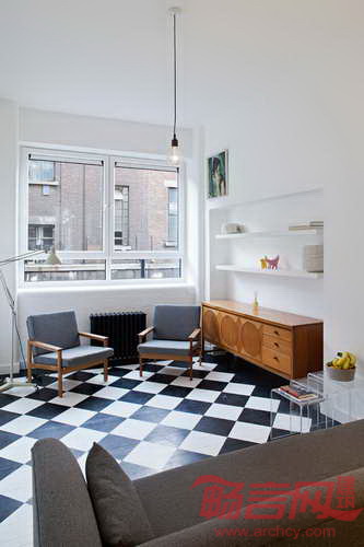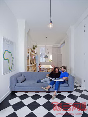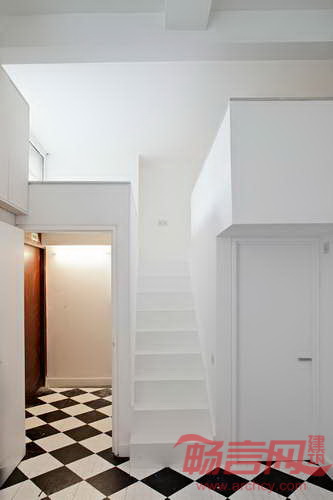 Russian for Fish公司的Pereen夫妇将伦敦一个工作室改造成宽敞明亮的一室户公寓,造价仅花费3万英镑。工作室此前位于一个烘焙房内,缺少私密度。设计师重新设计了一个宽敞的起居室、带有卫生间的独立卧室、处于夹层的私人工作区。由于业主在该公寓中生活过,了解自身的需求,有助于其定制专属的极简主义风格。设计师将厨房改到了靠近入口的公寓后侧,方便在起居室旁边设计一个较大的卧室。厨房安装了一个大窗户,改善了采光。