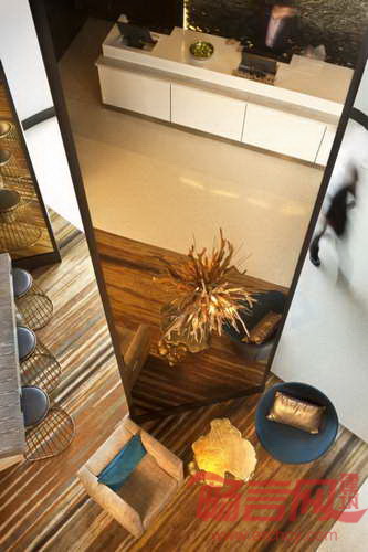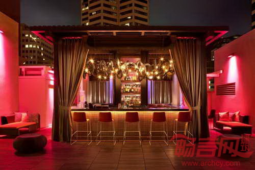 Mr Important Design事务所设计了位于美国圣迭戈的W酒店。设计师希望受众体验海浪在脚下翻滚、令人目眩神迷的感受。空间的氛围令人联想落日余辉的色泽。进入酒店,映入眼帘的是生动的室内装饰,接下来,稍远处的吧台和上方的酒吧DJ。大厅内最引人注意的是由浮木和黄铜棒构成的吊灯。所有的装饰物共同营造了迷幻、如海滩残骸般的神秘、加州金色的华丽气息。