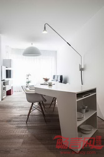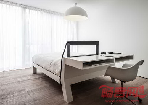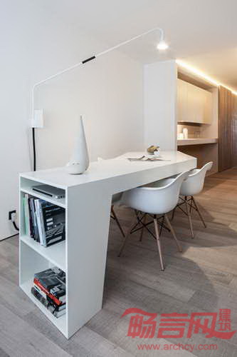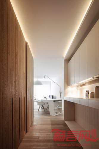 公寓位于比利时Bilzen,由C.T.建筑事务所负责室内设计。由于业主使用轮椅,设计师设计了包含置物架在内的储存空间。公寓此前是一个仓储空间,经改造成为一套包含若干无障碍设施的紧凑型住宅。设计师希望公寓外观不像是“为残障人士而设计”。尽管许多设计细节出于实际需要,但对于任何都市小公寓均适用。首个改造行动是在入口处添加坡道,并改造公寓的其他公共区域。公寓内部走廊将明亮的起居室、餐厅同卧室连接起来,走廊的宽度方便轮椅通行。