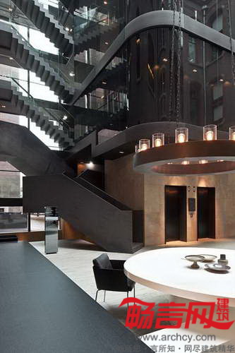 与建筑悠久的历史对照,设计师赋予了酒店其鲜明的个人印记。设计师惯于使用朴素的线条,端庄的材质,间或用亮色点缀的灰色为主的色彩。作为最富盛名和激动人心的当代意大利设计师,Piero Lissoni干练的设计融合了现代主义和当代主义时尚。酒店公共区域的显眼位置摆放着来自Living Divani、Kartell和Cassina 的高档家具。同时,古典的亚洲地毯带给人们舒适感。