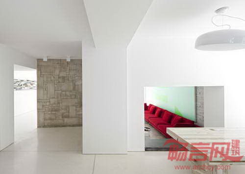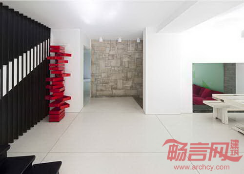 以色列建筑师Pitsou Kedem改造了一座位于特拉维夫的1950年代住宅,赋予其一面作为隔断的粗砺的砂岩墙壁。原住宅由以色列著名当代建筑师Dov Karmi设计,Pitsou Kedem的任务是改造室内区域。