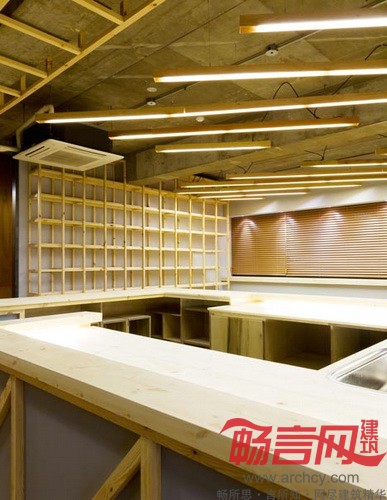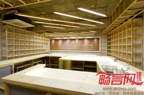 文化中心Saii+Kama为Moonji文化研究院提供了非正式的会议场所和休闲场所,同时也可用于文档存放。对角布置的灯管打乱了方正的垂直空间,设计创意来自韩国设计师团队M4工作室。