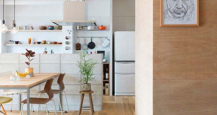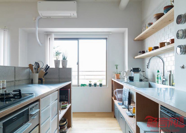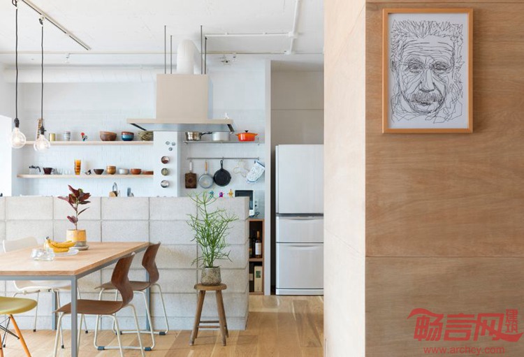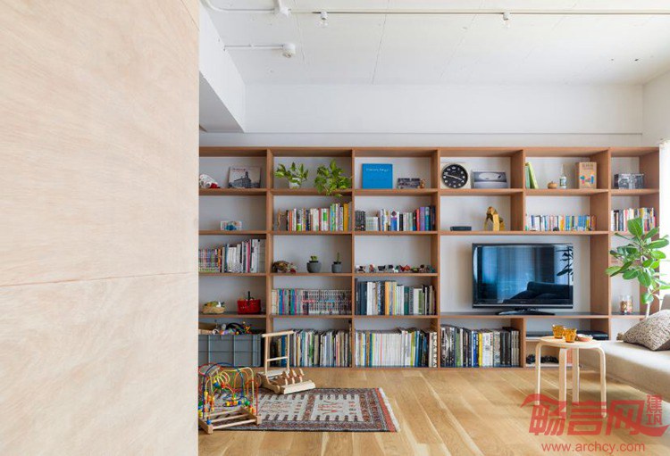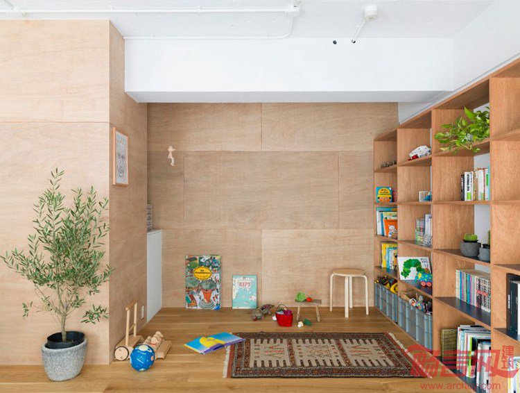 Domino事务所设计了位于日本川崎的J公寓。项目面积67.91平米,于2015年完工。这是一个老旧公寓改造,目的是通过添加木质箱体元素,塑造新的生活方式。本项目临近东京,介于老城区和新区之间的地带。从建筑顶层朝外看,我们可以看到如同希区柯克经典影片《后窗》中的景象。业主是一对拥有2岁孩子的年轻夫妇。考虑到在有限空间内孩子成长带来的生活方式变化,设计师设置了若干角落盲点和箱体空间,从而使空间更加丰富。设计师没有添加新墙体,而是设置了包含储藏和浴室的箱体,同时起到自由隔断的作用。推拉门的应用使得空间分隔更加灵活。