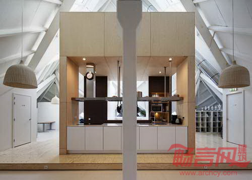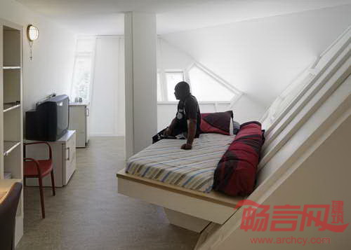 荷兰Personal Architecture设计工作室对Piet Blom的标志性的方块屋进行了改造。项目位于荷兰鹿特丹,为劳教人员的最后关押阶段而设。Supercube是1980年代40座方块屋中的一座,方块结构盘踞在六边柱之上。部分建筑容纳了公寓和酒店房间,本项目所在的建筑自建成以后,一直处于闲置状态。项目设计师将建筑存在的问题归结为“楼层之间缺乏连贯性、垂直次序的平淡乏味、使用不便的中间楼层”。项目插入了中庭结构,带来自然光线,并使得流通空间更为合理。