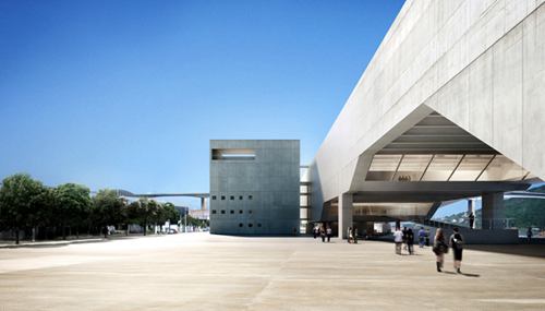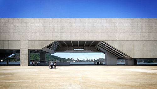 这是由巴西Metro Arquitetos Associados事务所的著名建筑师保罗·门德斯·达·洛查和Martin Corullon合作设计的最新建筑项目“cais das artes”,即“pier of the arts”艺术码头,这是一个博物馆和剧院综合体项目,位于里约热内卢北部的维多利亚港口。建筑基地位于一座小岛上,这座岛屿是由suá海湾和运河共同形成的。团队沿着码头的基地地面上浇注了一大块混凝土板,由此人们可以观赏到美丽的乡土景色和城市风景,周围是全新的建筑和历史古迹。首期项目计划将这个重要的空间转化成一座都市文化中心,同时还保有当地的特点。这一巨大的建筑体量,将容纳三层博物馆空间和一个1,300座位的剧院。