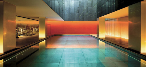 地下二楼整层都是为住客附设健身中心,只让有房卡的房客能扫瞄电梯下到地下二层的健身中心,除了各式健身设备外,长达22米的全不透钢游泳池,也是一个亮点设计,隐闭的室内空间中带有一点东南亚渡假风的设计,只对房客开放,而且完全都是免费的。