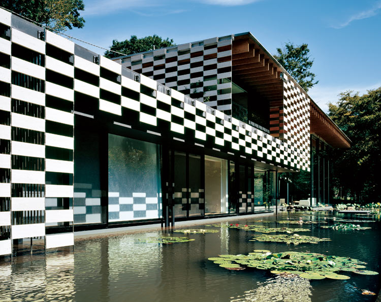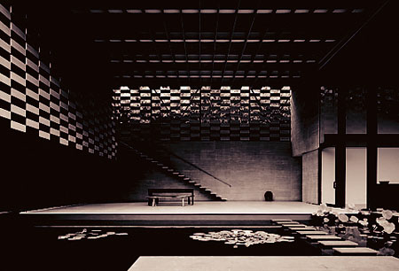 制作“洞”的部件是:薄薄的石灰华板,20厘米×60厘米大小,30毫米厚,再加上直径8×16毫米的不锈钢栏杆,这些布满孔的外墙看起来像是西洋棋棋盘。这一次,藉由不锈钢管,利用石头来衬托莲花花瓣的轻盈。