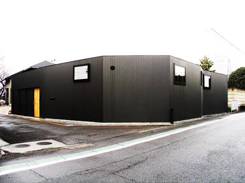 整个住宅从外部看就像是一棵黑色巨树被切出一段的表情。业主一家四口便住在这个如同被树皮所包覆的洞里。