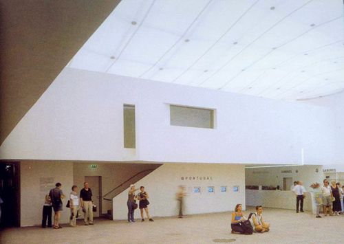 2000年汉诺威世博会葡萄牙馆的设计要求是,在大会之后拆除并带回葡萄牙。此馆的主体为正方形设计,“一只手臂”伸出作为一块露天天井。整个区域设计为双层,一层为展览馆,二层设有VIP室、行政办公室和一个小礼堂。建筑的选材均基于世博会的生态理念。整个设计体现了现代与传统相结合的理念。外墙主要为石灰石材质,在天井处镶嵌有蓝色和黄色的陶制瓷砖。漆过的深色软木嵌于钢铁框架内。波浪状的馆顶为金属框架,整体采用透明聚酯材料。