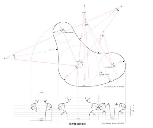 这种连续的体量源于一个简单的剖面轮廓,这种方法可以满足建筑平面及剖面对使用功能的要求,在整个建筑的立面外观变化的同时实现了高精度的施工和标准化的预制结构。