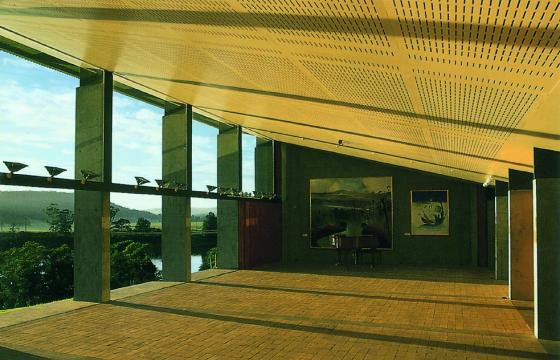 这是亚瑟和伊冯.博亚德位于乡村的地产,座落在Shoalhaven河的边上,是他们的一个教育基金的综合建筑。它包含了一个大厅和能够容纳32名学生同时生活几天的住宿部分。它的场地非常优美,四周群山环绕,前面可以俯瞰宽广的河流。这座建筑成为了这个场所的一个框架,就像画家的一个景框一样。