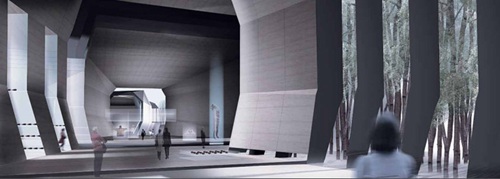 最初的灵感来源于布鲁斯·查特文的小说《The Songlines》:澳大利亚的原住民通过诵经和唱歌的方式于无形中记录着整个大陆的地图。每个区域都有自己特有的歌唱方式,人们在特定的地方采用特定的唱法,唱完之后来到别的区域就换一种新的唱法。目前当地的原住民仍然采用这种特殊的方式记录当地地图。设计者将博物馆中灵活编织的无形路径隐喻为森林,这一概念与原住民绘画相惬合,其中那些看似毫无关联的元素在一个确切的框架内和一个共同的基础上被组织起来。