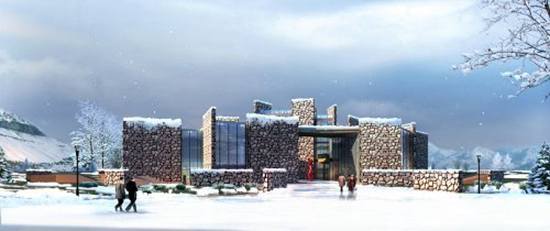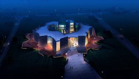 设计的灵感来自于内蒙古大草原的起伏延绵的特殊地貌特征,场地自东向西形成了四百余米巨大的跃动曲线,整个建筑群就像从地面生长出来一样。图书馆和少年宫曲线型的退台设计,最大程度的促进了使用者、公共广场和建筑之间的互动。由室外延伸至室外的中庭最大程度地导入阳光,开放式的楼梯和连廊以及延伸进两栋建筑内部的流线型绿化区域和铺装部分,增强了空间上的视觉连贯性,为人们提供了一个充满戏剧感的模糊空间。
