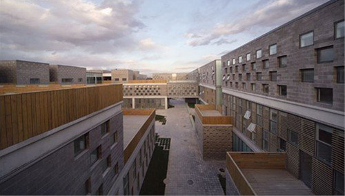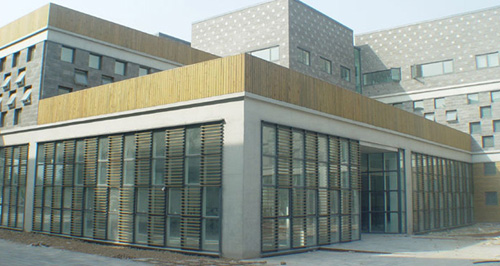 用友软件园I号研发中心由三栋相互连通的南北向建筑组成。设计关注广义上的办公空间,涵盖工作、休息和交流空间。将传统意义上的靠交通串起交流空间的模式转化为去设计一个支持通过的交流空间体系。同时,基于对用友现有研发模式的分析和归纳之上,设计建立了三种空间模式单元来应对不同的团队工作方式,每一种模式都具有异于其它二者的属性和空间特征,针对于研发人员不同的合作方式以及工作性质所要求的灵活性和独立性,每栋在不同层分别容纳了这三种空间模式。三种不同的空间模式对应三种表皮和立面做法,分别为:里层大面积玻璃与外层木格栅遮阳190×390混凝土砌块墙体开方窗、390×90混凝土砌块与玻璃砖混砌墙体开条形窗。景观设计上借用了CG领域的概念,定义了三套独立的系统:地形系统、贴图系统和植栽系统。三套系统按照不同的逻辑生成,然后进行叠加。